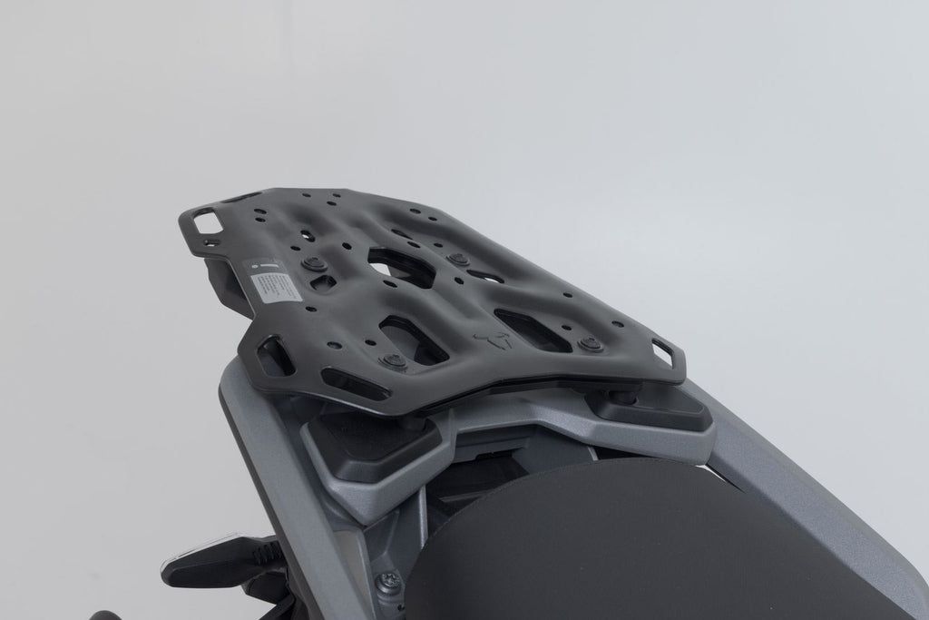 Ready for big adventure: Our ADVENTURE-RACK proves itself with its extreme durability and function-oriented shape. More than 15 years of experience producing racks, combined with feedback from customers and test riders, went into the development of this aluminum rack Material thickness, weight and geometry have been optimized for demanding tours and off-road use. The bike-specific attachments guarantee the best fit and easy mounting on original attachment points. Specifically developed for long-distance enduros, large street and sport touring machines, the ADVENTURE-RACK offers a large contact surface. Numerous, large lashing eyes provide secure hold for tail bags. The functional bores require adapter kits for attaching top cases by SW-MOTECH, Givi, Krauser and Shad or SysBags.
