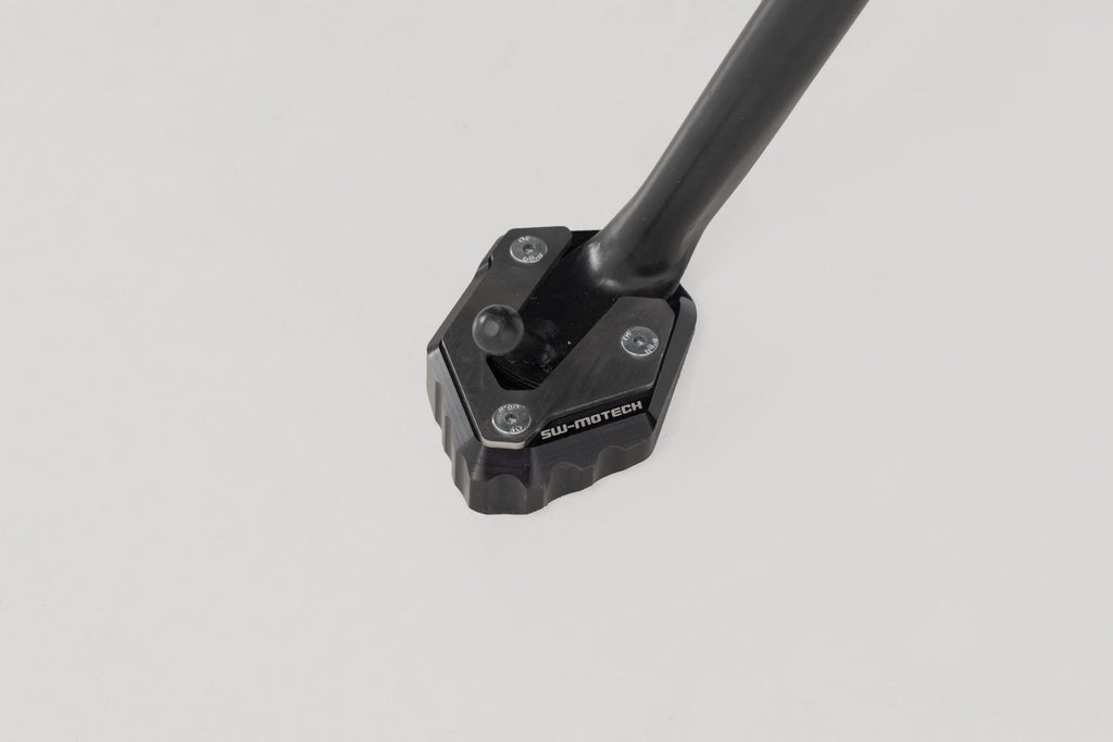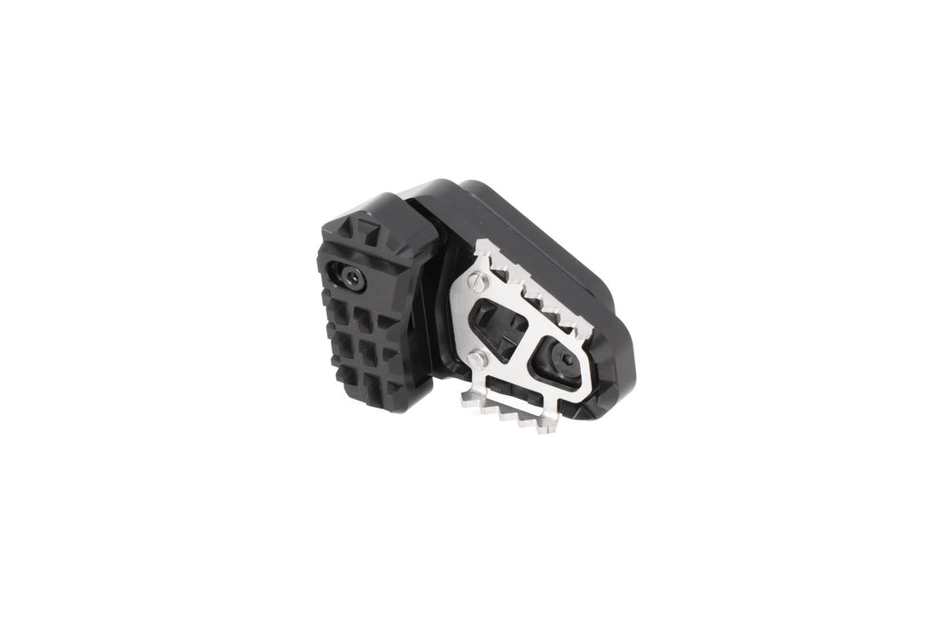 SW-MOTECH manufactures these extensions from high-strength milled aluminum alloy; they feature a black anodized surface and a stainless steel step plate. For optimal ergonomic adjustment, the increase in the brake pedal step can be adjusted in two stages of 22 or 27 millimeters.
