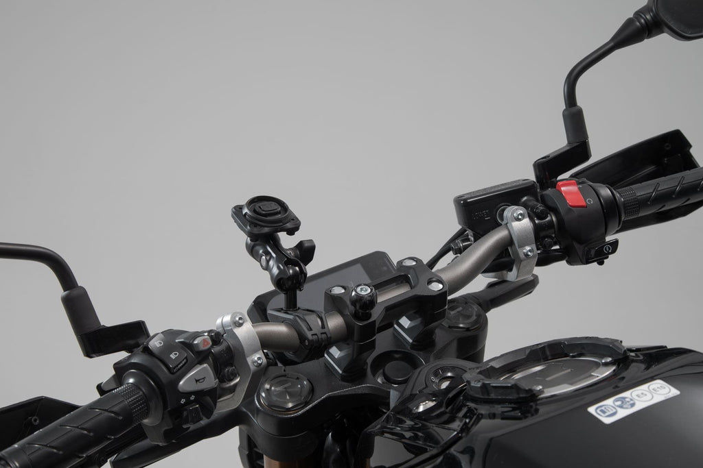 Our universal kit offers a variety of different attachment options on the motorbike: The included 1" ball can be mounted on a M6 or M8 thread, on a mirror thread holder or with a mounting clamp. The mounting clamp is designed for handlebars with a diameter of 22. 28 mm or 1". A pivoted socket arm makes positioning in the cockpit easy - so the display always remains in plain sight, without obstructing instrument view.